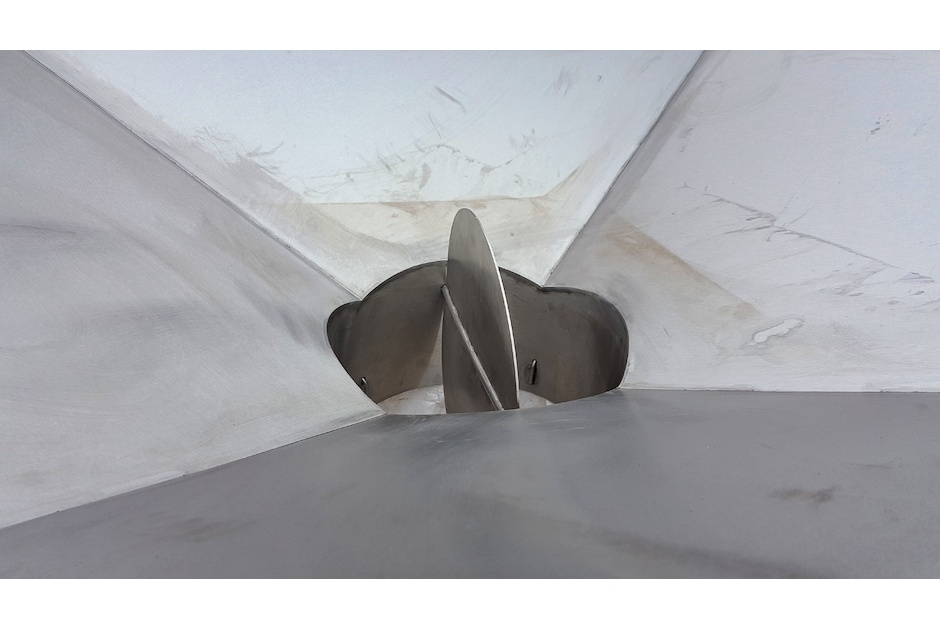 Nerezová násypka, úhel sklonu 28°, s výstupem Ø 330 mm a uzavíráním otočnou klapkou