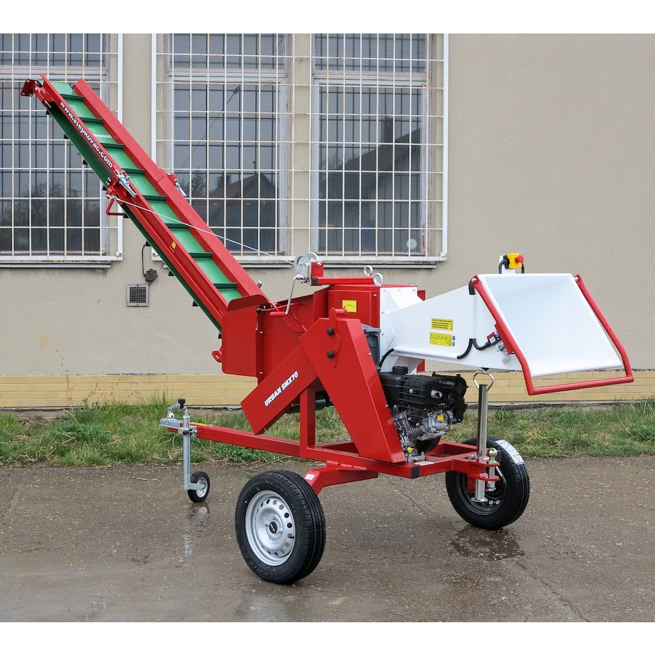 Štěpka je vynášena skládacím pásovým dopravníkem délky 3,4 m. Sklon dopravníku je nastavitelný pomocí navijáku. Při přepravě je dopravník složený a zvednutý do svislé polohy. Jako volitelné příslušenství je možné na konec dopravníku namontovat skluzavku o délce 0,8 m (štěpka ze skluzavky dopadne na vzdálenější místo), nebo dvojitý pytlovač na rašlové pytle s opěrnou nohou. Pytlovač je připevněný pomocí čtyř šroubů a jeho montáž zabere pouze několik minut.