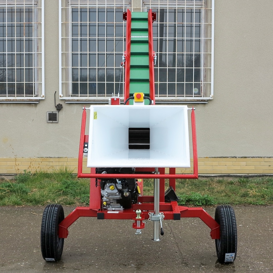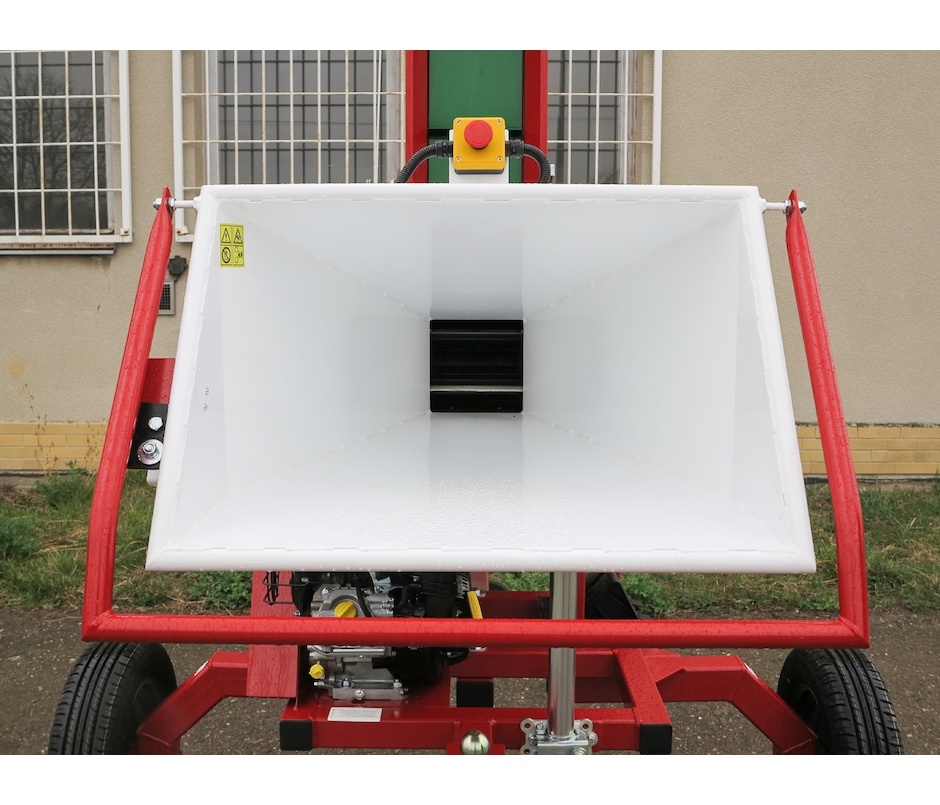 Násypka je dostatečně dlouhá pro zajištění bezpečnosti a navíc je vybavena bezpečnostním vypínacím rámem. Při stlačení vypínacího rámu dojde k zastavení motoru. Násypka je umístěna horizontálně, což značně usnadňuje vkládání dlouhých větví ve srovnání se svislou či šikmou násypkou. Povrchová úprava celého stroje je provedena práškovými barvami.