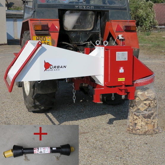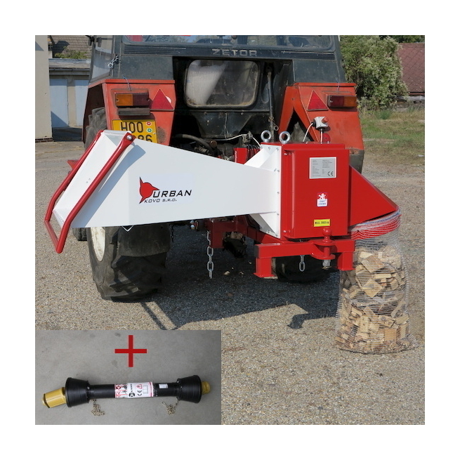 Štěpkovač (špalíkovač) URBAN TR70 je nesený na tříbodovém závěsu traktoru. Optimální výkon traktoru je 50 hp a více, minimální výkon je 30 hp. Pohon je zajištěn přes kardan s přetěžovací spojkou se západkami (je součástí stroje). K tomuto zvýhodněnému setu nelze objednat setrvačník.